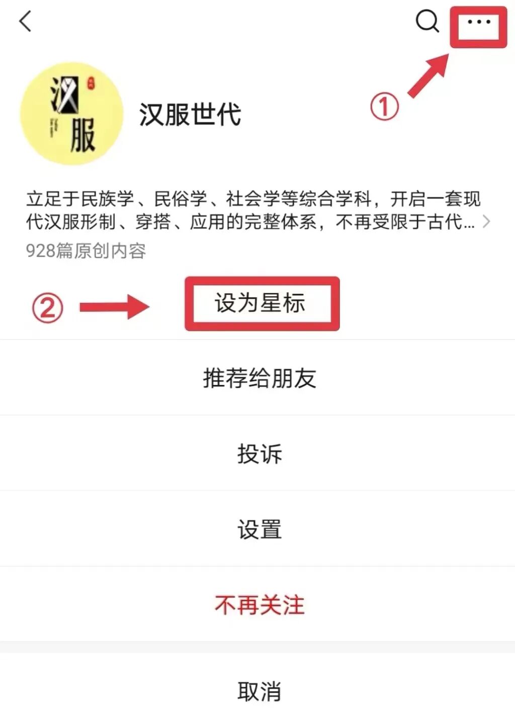 阿罗请大家点点星标,因为近期有小伙伴反映找不到我们了,推送时间也跟我们的发送时间不符,为了让小伙伴们得到最佳体验,辛苦大家动动手,星标汉服世代,步骤很简单哦→