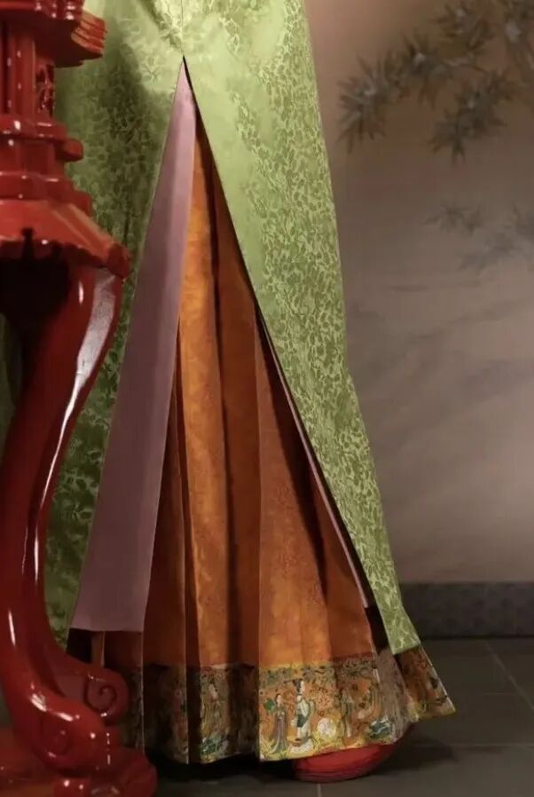 马面裙在宋元时期出现雏形,明清进入高峰,一直到近现代依然流行,而且它的款式、框架从诞生起就基本固定下来,只是裁剪、放量、装饰手法随着不同时代的流行有所变化。
