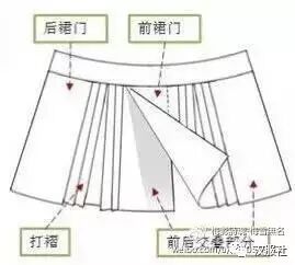 裙門的寬窄如何認定,假設一邊的褶子區小於裙門寬,那就是寬裙門,應該搭配喇叭褶。如果一邊的褶子區大於裙門寬,那就是窄裙門,應該搭配平行褶。