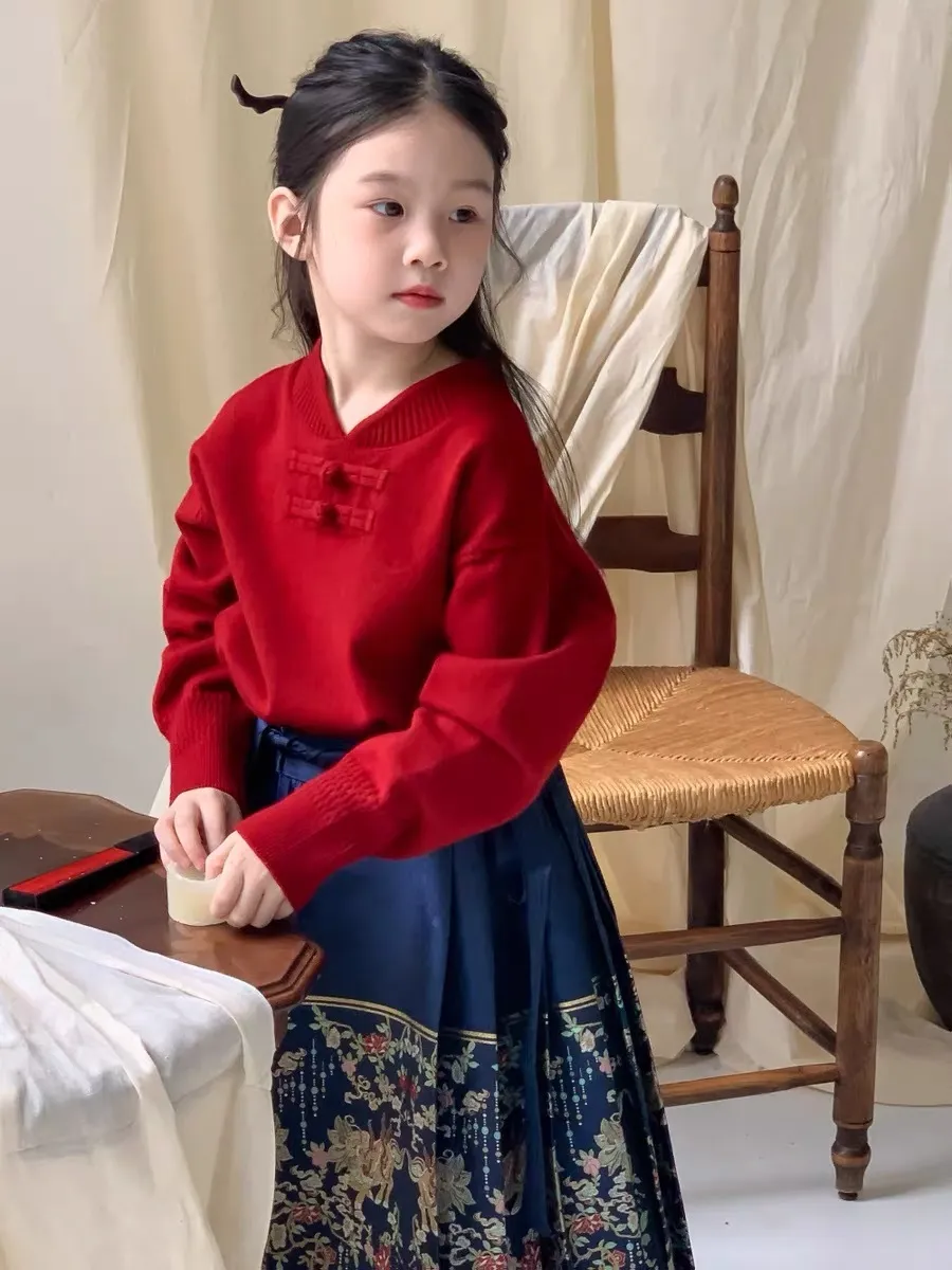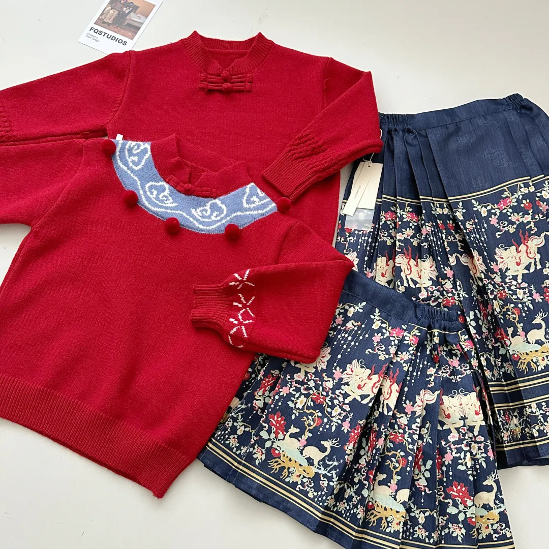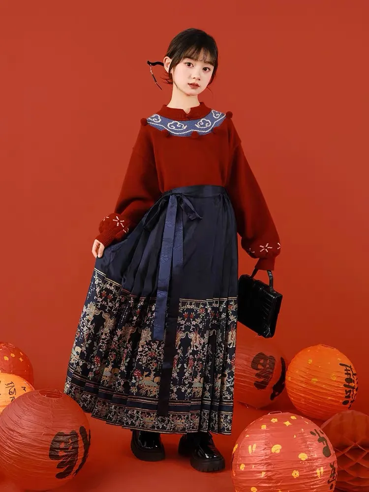 ?下单详情【国风毛衣+马面裙】【款式】祥云毛衣 中国结毛衣 短款马面裙裤 长款马面裙【尺码】120-160【材质】