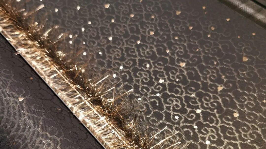 孙源的厂原本是领带厂,机器最多可以织 8 种颜色,在硬件上完全可以胜任。对方要的面料被称为仿螺钿,是一种单色金丝线织成的面料,孙源请的工人没有经验,但他本人在品牌公司开发过商品,能在很短时间内用现有机器达到客户要求并交货。